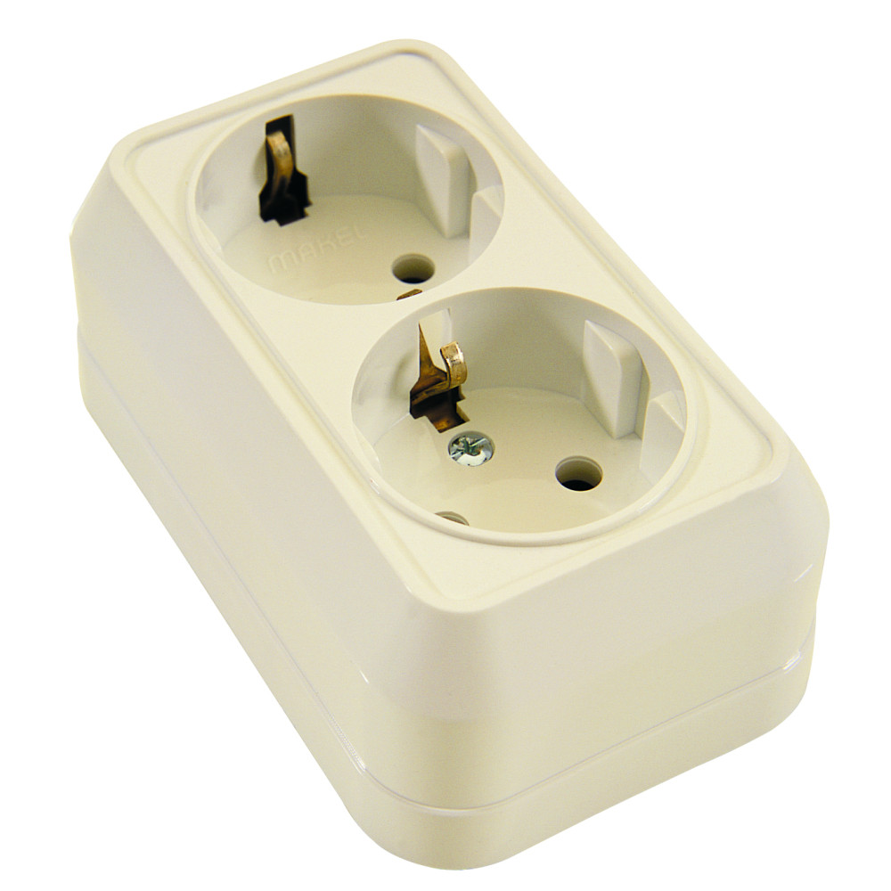 Розетка двухместная с заземлением кремовая ІР-20 Makel