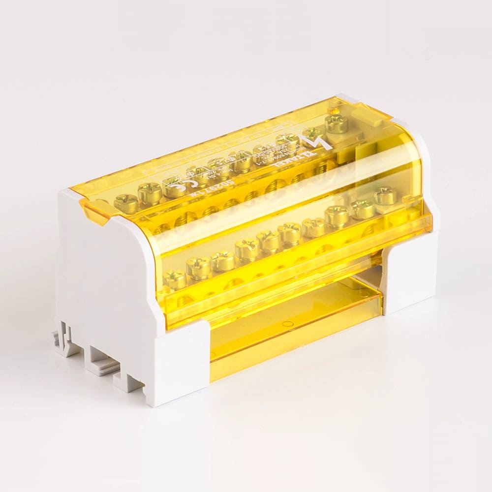 Шина нульова на Din-рейку в пластиковому корпусі 2х11 125А, жовтий 502971ж TAKEL