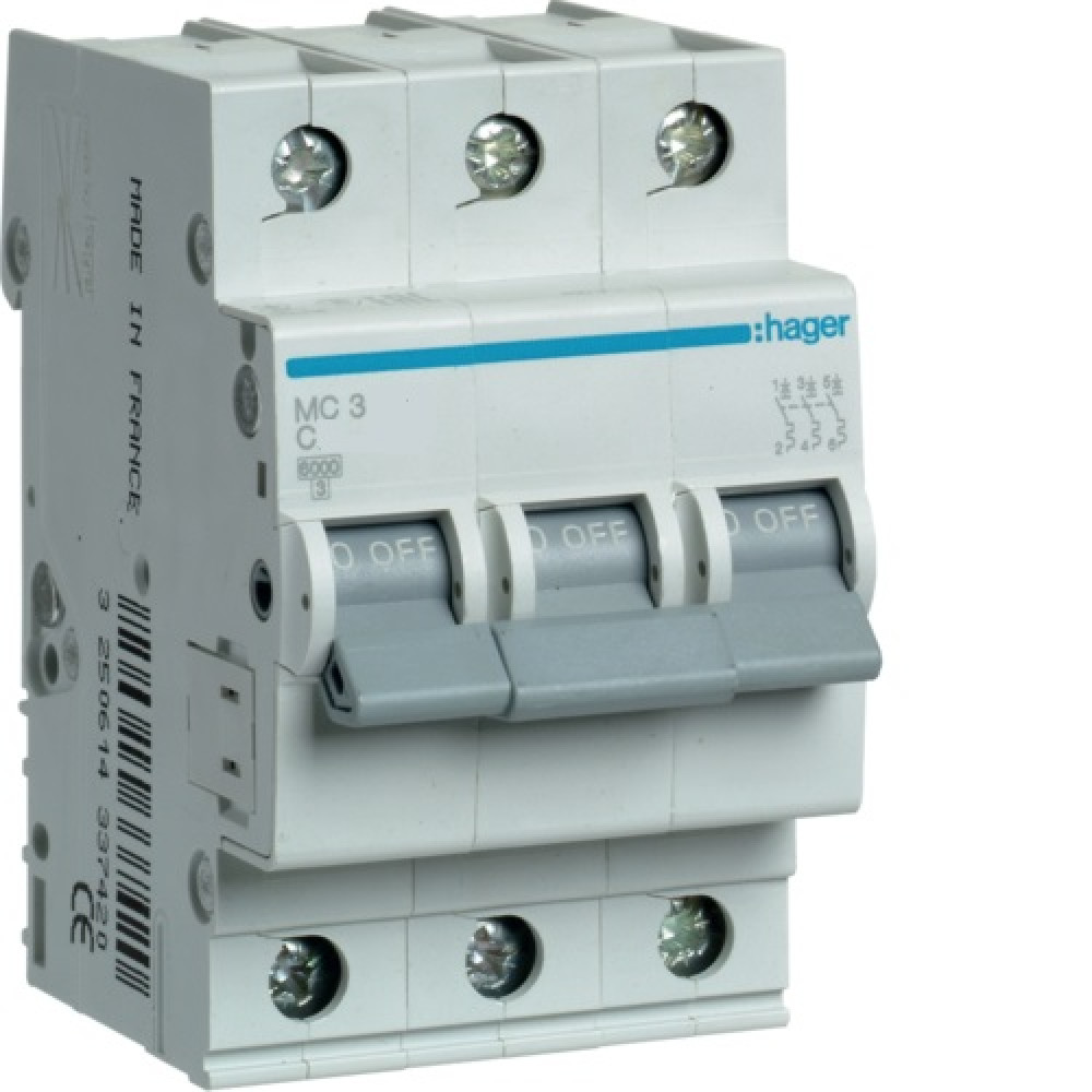 Автоматичний вимикач 3P 6kA C-40A 3M Hager