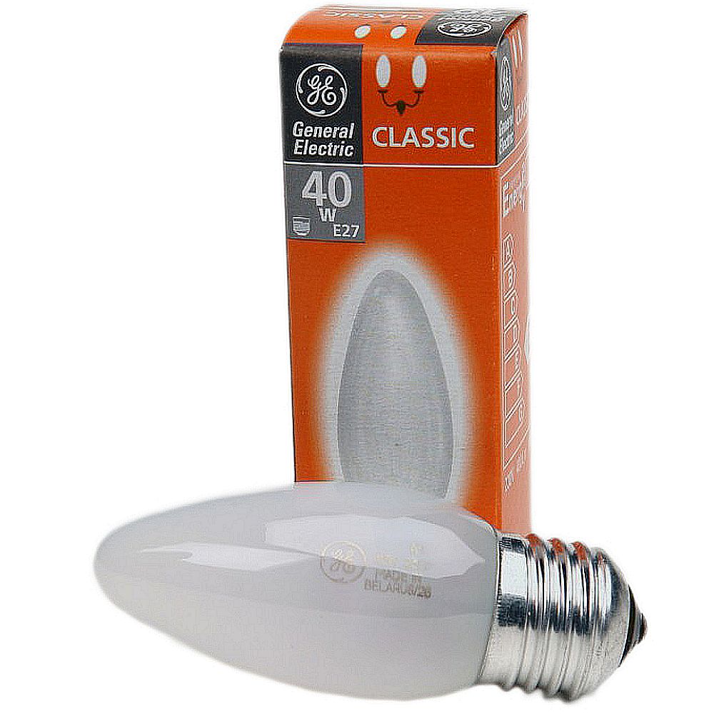 Лампа накаливания свеча 40С1/F/E27 230V матова GE Угорщина