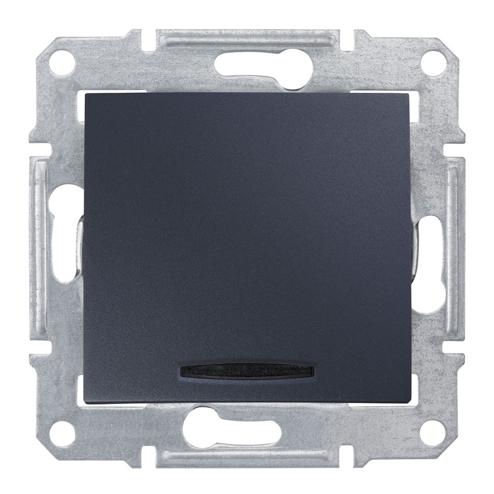 Механизм выключателя перекрестного одноклавишного с синей подсветкой графит Sedna Schneider