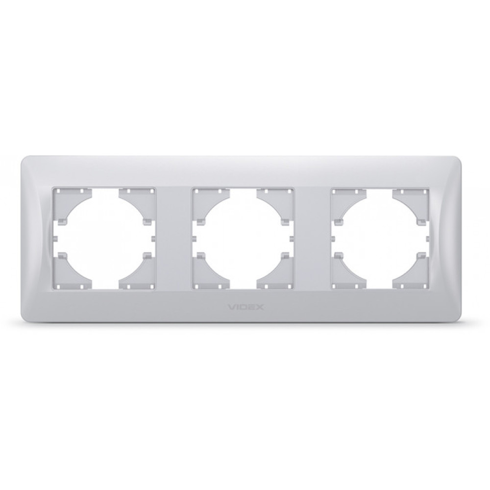 Рамка трехпостовая горизонтальная серебряный шёлк VIDEX BINERA