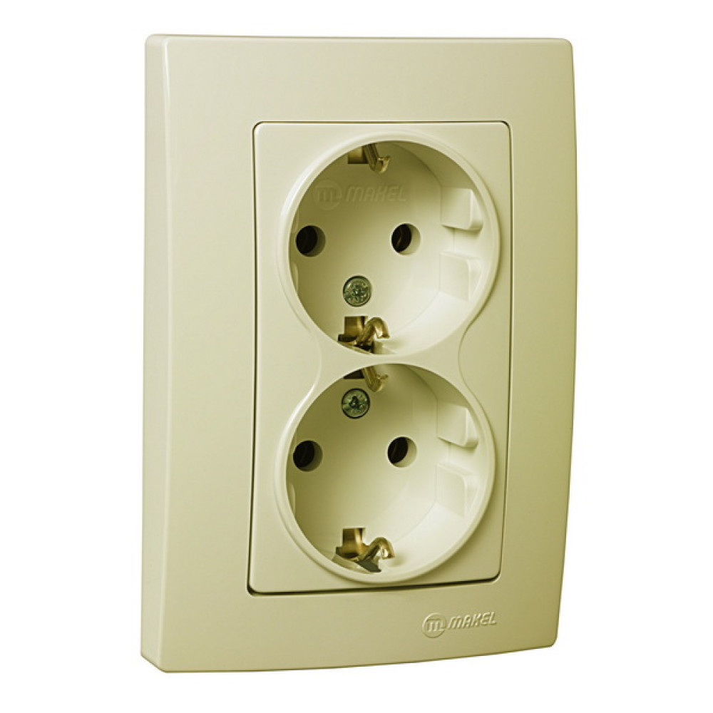 Розетка двойная с заземлением (новий дизайн) кремова Makel Lillium Natural Kare