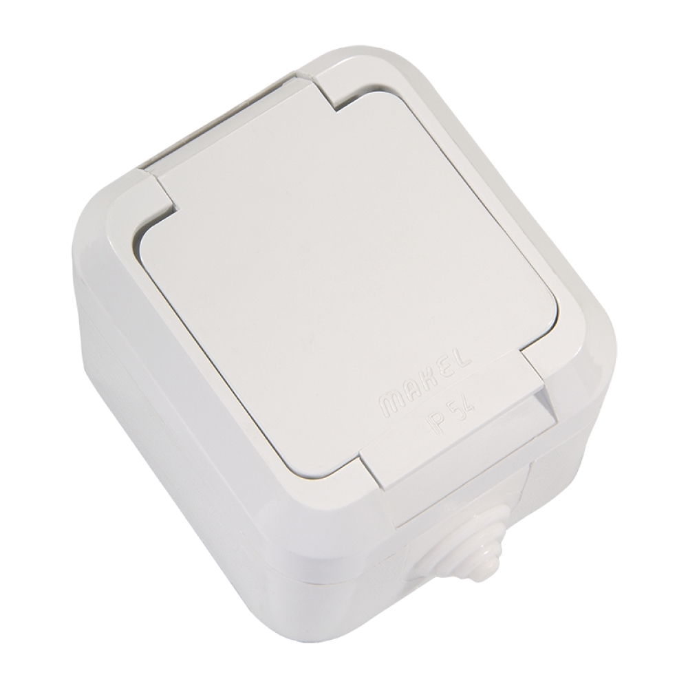 Розетка с крышкой и заземлением белый ІР-44 Makel