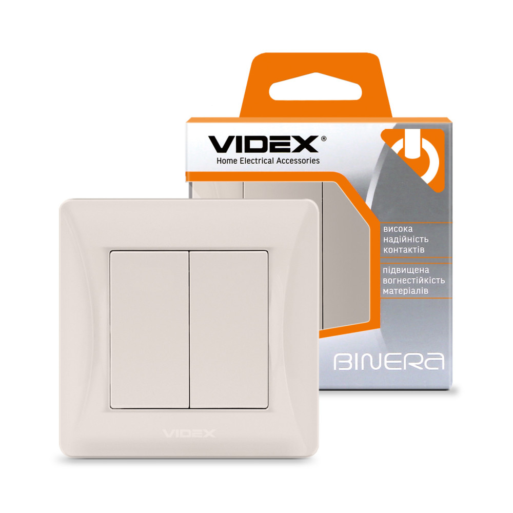 Выключатель двухклавишный кремовый VIDEX BINERA